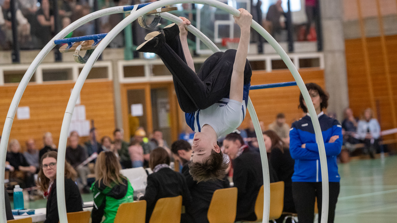 L’entraînement est varié et exigeant. Il commence par des bases : monter et descendre en toute sécurité, effectuer les premiers roulés, trouver l’équilibre. Progressivement, les débutantes et débutants évoluent vers des éléments plus complexes, encadrés par des entraîneuses et entraîneurs qui mettent l’accent sur la sécurité et la technique. La responsable du secteur Rhönrad à la FSG, Jacqueline Tschann, pratique elle-même ce sport depuis l’enfance et connaît les exigences d’un programme complet : « C’est physiquement très exigeant, avec une grande endurance de force et une tension corporelle constante tout au long de l’exercice. La dimension mentale reste aussi un défi : en compétition, il faut à la fois concentration et calme. »